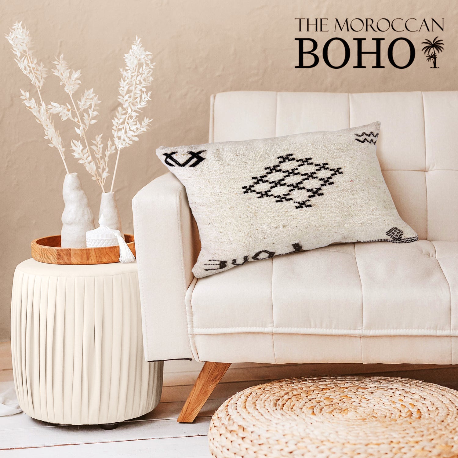 - 100% Handmade and sustainably sourced: Our pillows are handwoven by the finest craftsmen in the High Atlas region of Morocco, with exceptional attention to stitching and embroidery details.