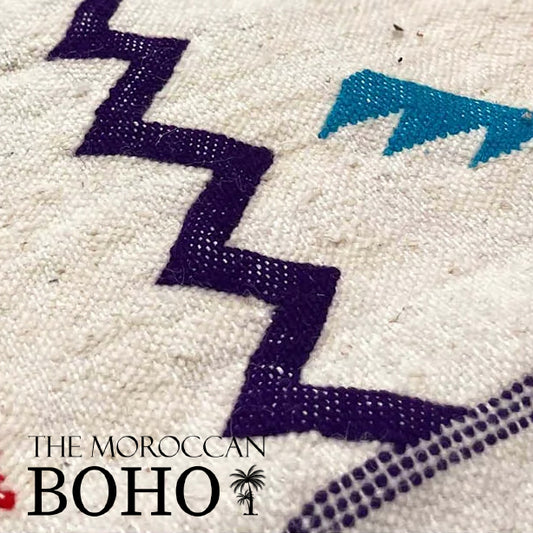 Beni Ourain rugs are meticulously handcrafted by Berber artisans using age-old techniques. The process involves shearing wool from local sheep, spinning it into yarn, and weaving on looms to create the rugs’ distinctive, plush pile. Natural dyes and traditional patterns are incorporated, resulting in each rug’s unique character.